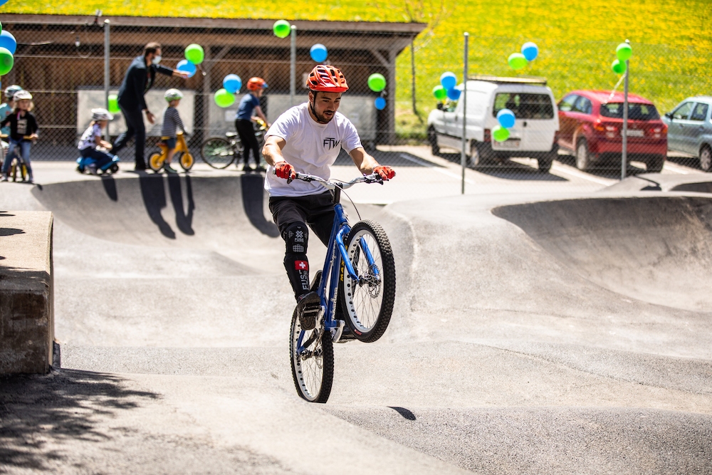 Möchtest du deine Freude am Pumptrack Oberthal auf dem Kopf tragen oder auf das Heft kleben?